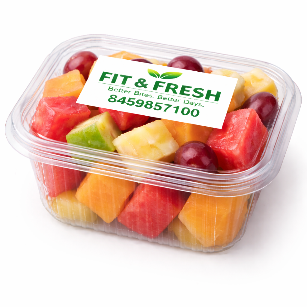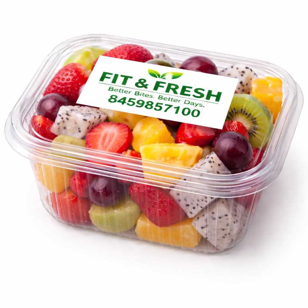 A premium mix of handpicked fresh fruits including Watermelon, Muskmelon, Green Grapes, Black Grapes, Kiwi, Dragon Fruit, Pineapple, and Mango. Perfect for a refreshing, healthy, and energy-packed meal.