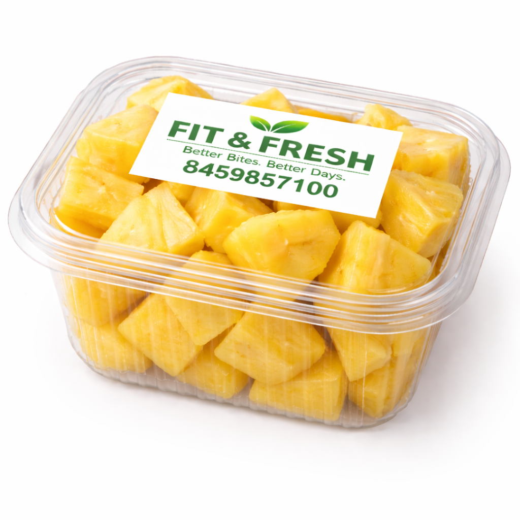 Freshly cut juicy pineapple chunks, naturally sweet and tangy. Rich in Vitamin C, perfect for boosting immunity and refreshing your day.